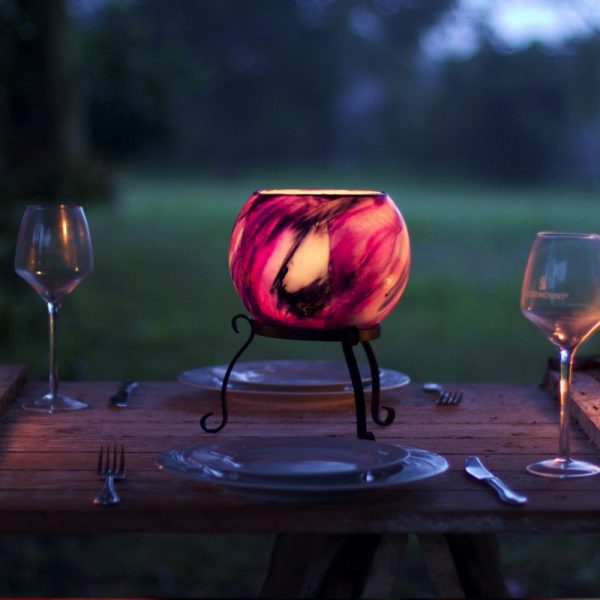 Hand-made, powder coated steel stands show your lantern off to great advantage - and make a distinctive centerpiece for any function. Photo by Integrity Candles